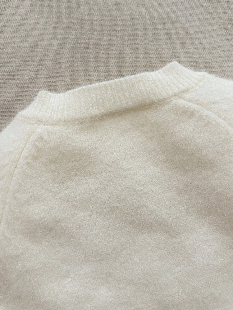 Plongez dans un univers de douceur avec ce cardigan poétique, une pièce au charme intemporel qui semble avoir été tricotée avec amour. D’un blanc crème lumineux et chaleureux, il apporte une touche de tendresse à chaque tenue.